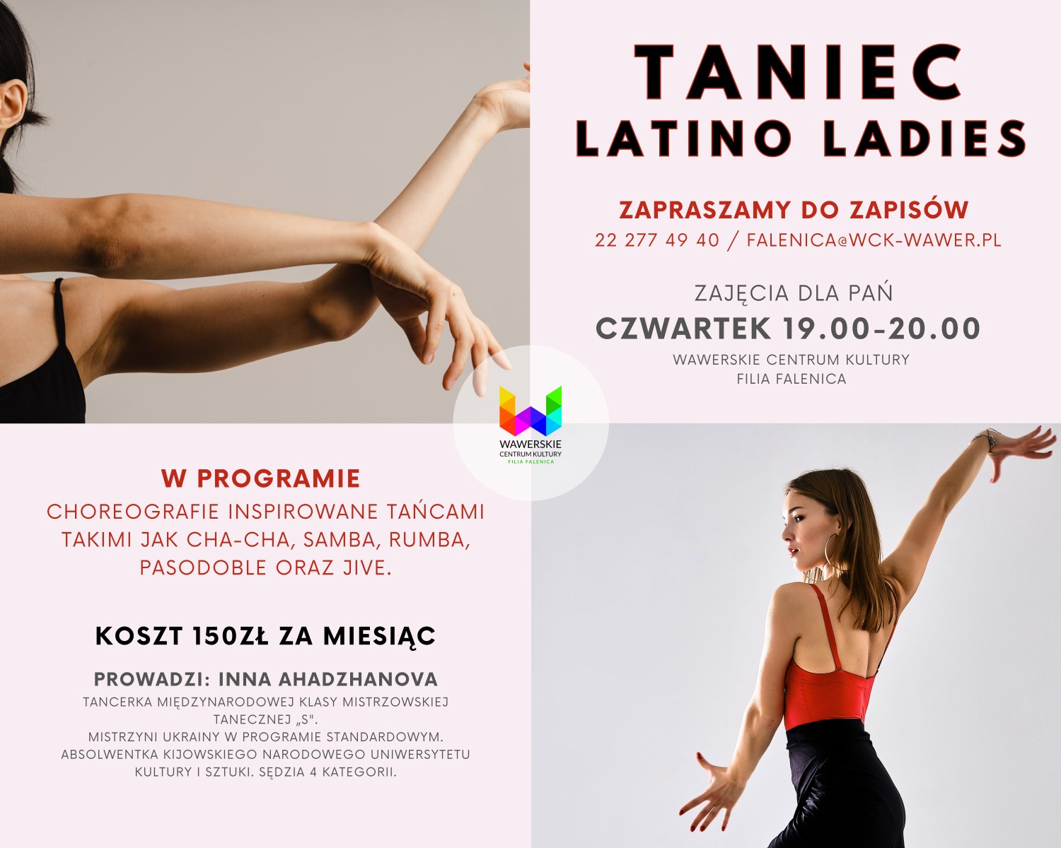 Zapraszamy wszystkie Panie na zajęcia taneczne Latino Ladies. To spotkania, podczas których w przyjaznej atmosferze można doskonale spędzić czas, tańcząc do rytmów latynoamerykańskich.