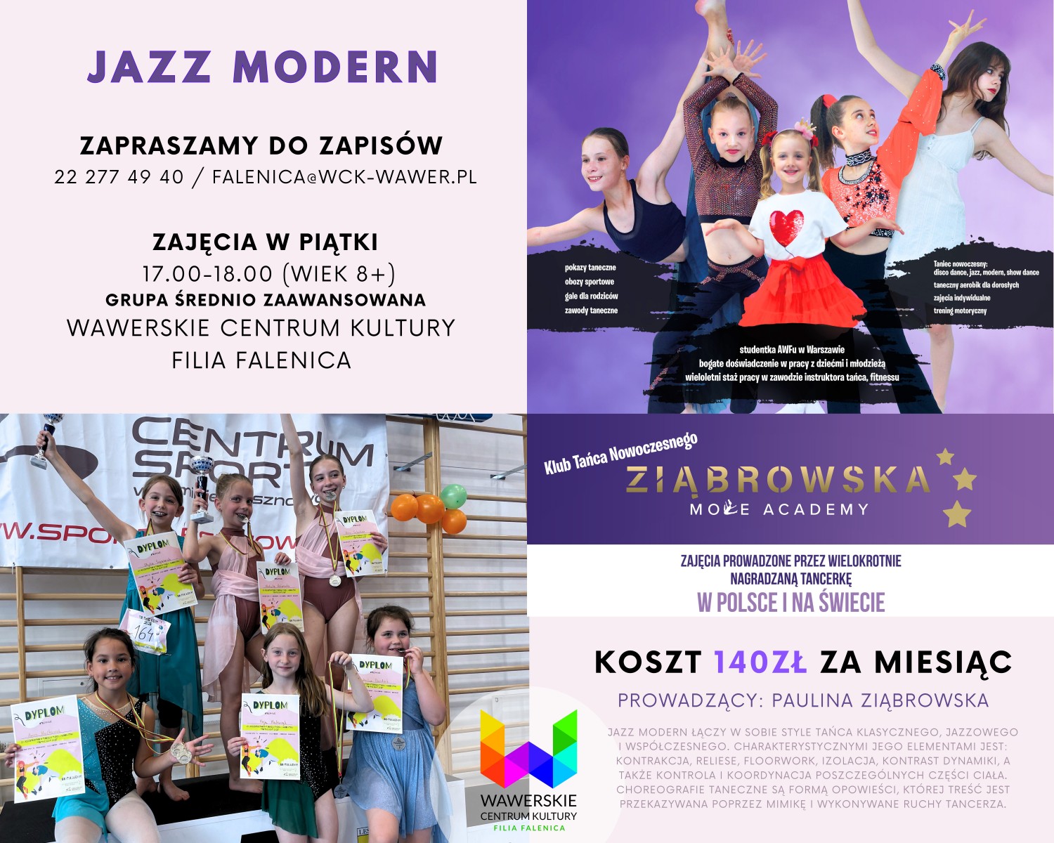Zapraszamy do zapisów do nowej sekcji: JAZZ MODERN (nabór trwa, zajęcia ruszą po zebraniu się grupy).