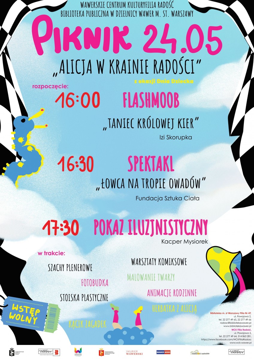 W trakcie wydarzenia nie zabraknie aktywności i animacji: plenerowych rozgrywek szachowych, animacji ruchowych i zabaw integracyjnych, warsztatów komiksowych oraz plastycznych, a także quizów inspirowanych kulturami świata i motywami z opowieści o Alicji.